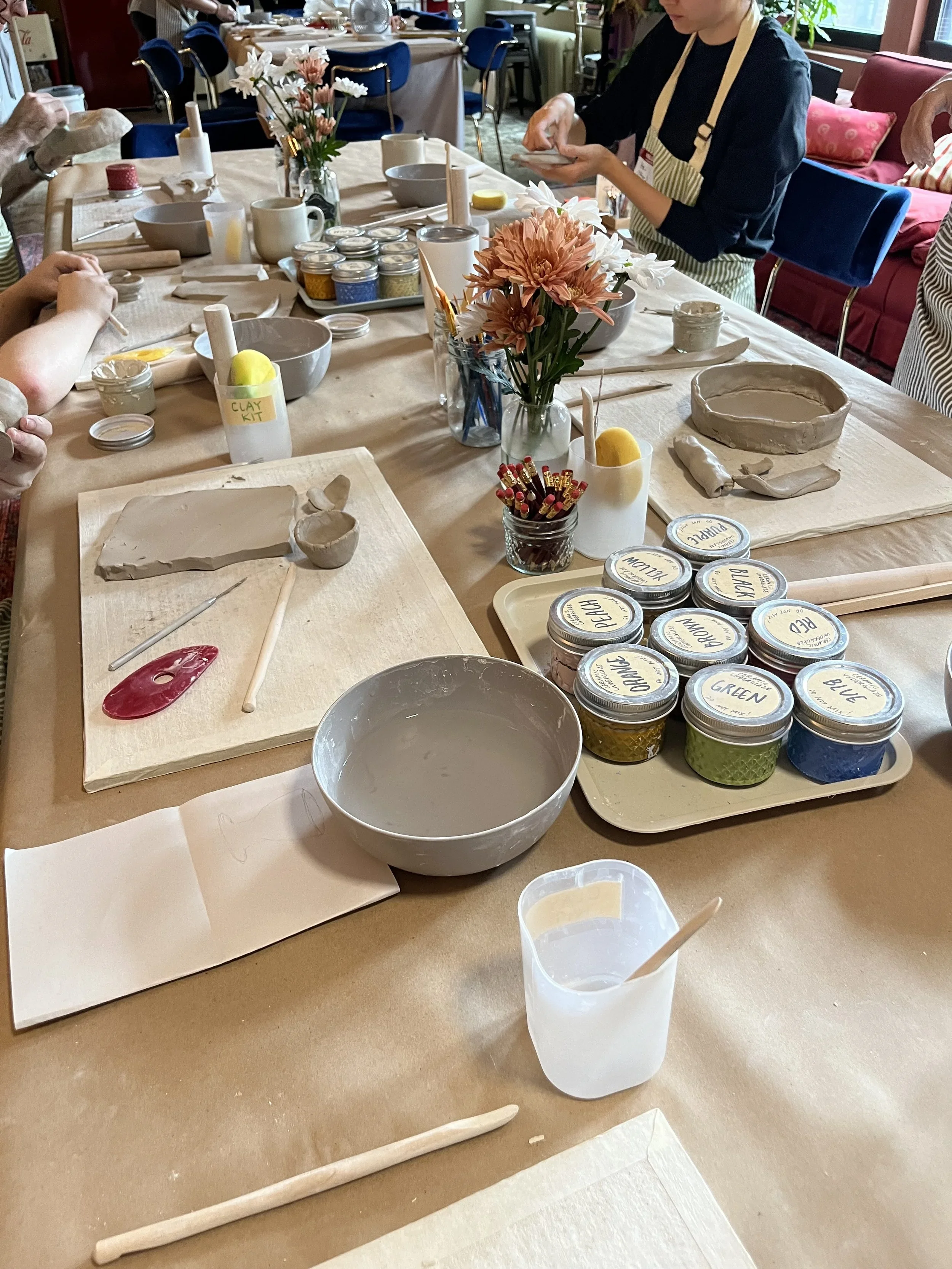 Intensive enrollment includes the Creative Flow Membership, which includes Art and Clay Library access. Show your digital membership card to pop by during any Open Hours. Use the space to continue practicing what you learned, meet up your group, or co-work!