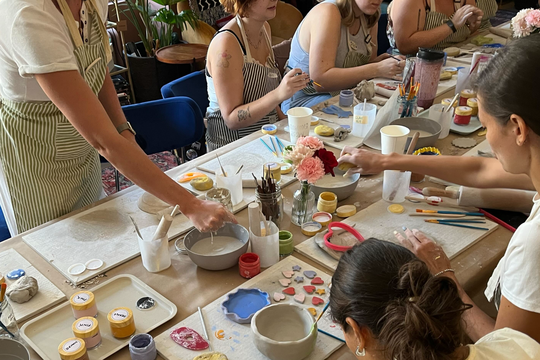 All materials and supplies needed for your workshops are provided on-site. Take home the pieces you create.