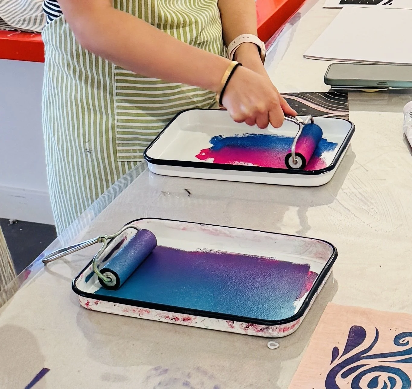 We’ll explore 2-color linocut techniques and become familiar with registering our layers! Registration brings depth and harmony to your prints.