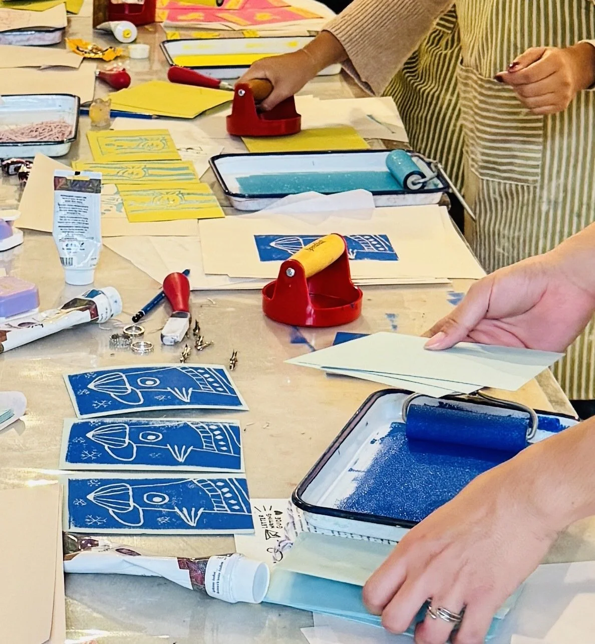 We’ll discuss printmaking as a creative practice and get comfortable with linocut and our group through a fun game!