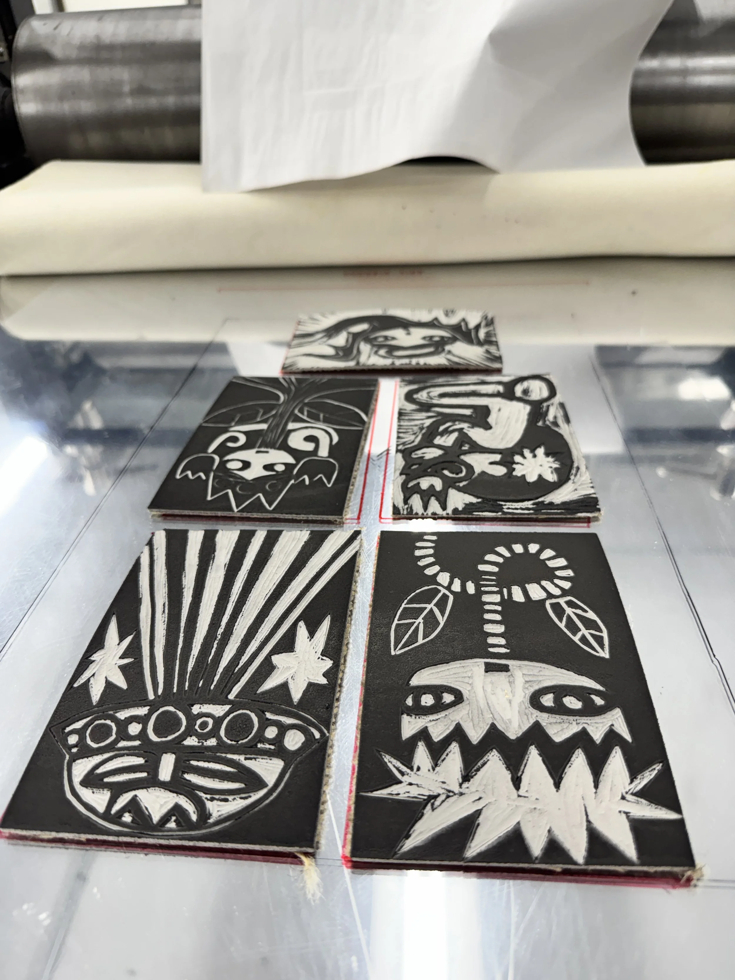 Each impression, imperfections and all, becomes a mark of presence, a record of time and touch. There is a rhythm to printing: the quick pace of pulling multiple prints, the instant gratification of seeing an image take shape again and again, yet each one asks us to pause and adapt to what the process reveals.