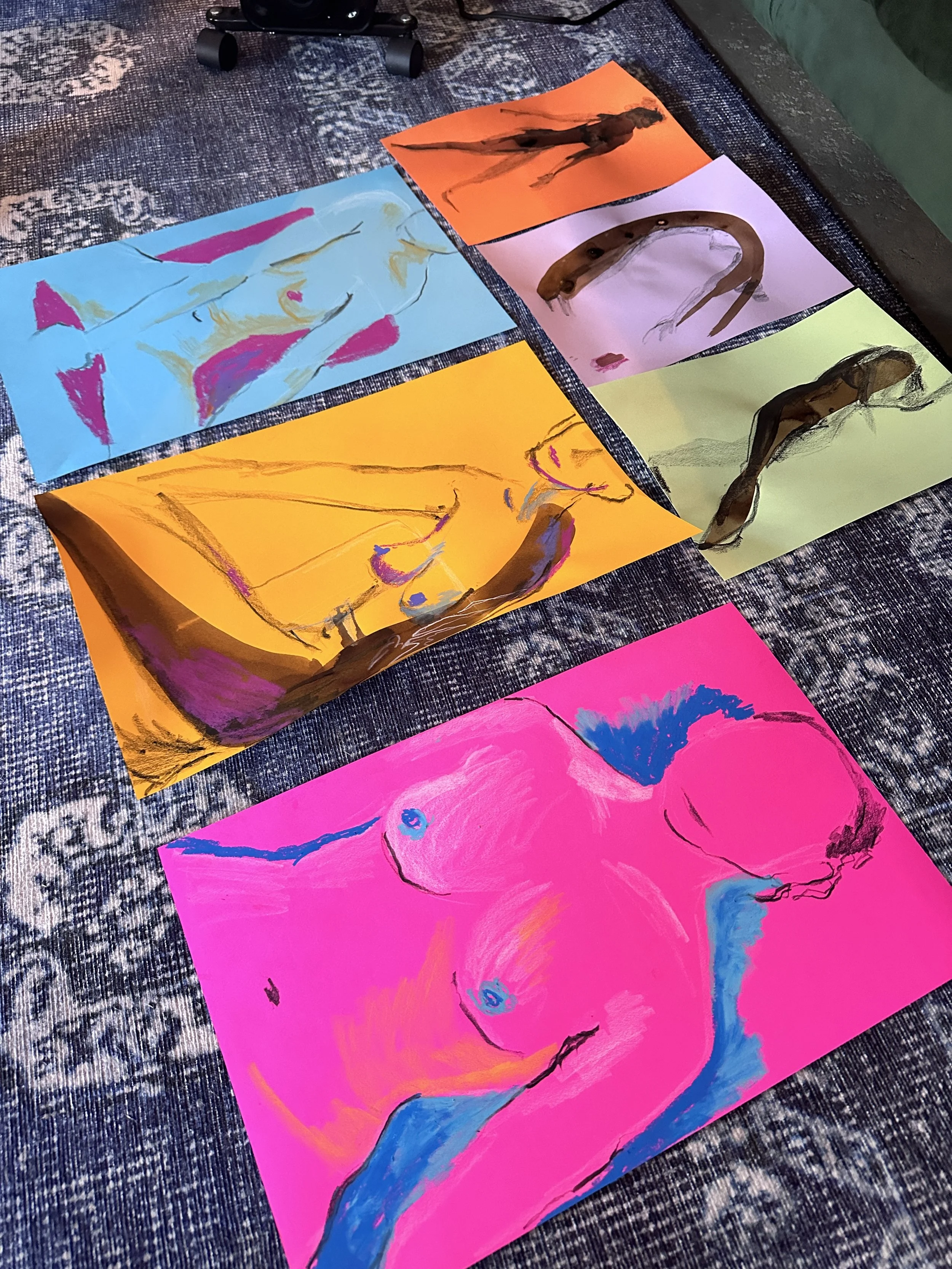 An expressive, dry media figure drawing class. Capture the light and shadows of the human body using charcoal, pastels, and even the eraser!